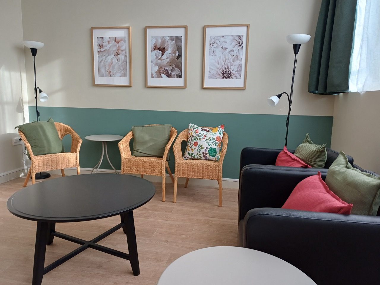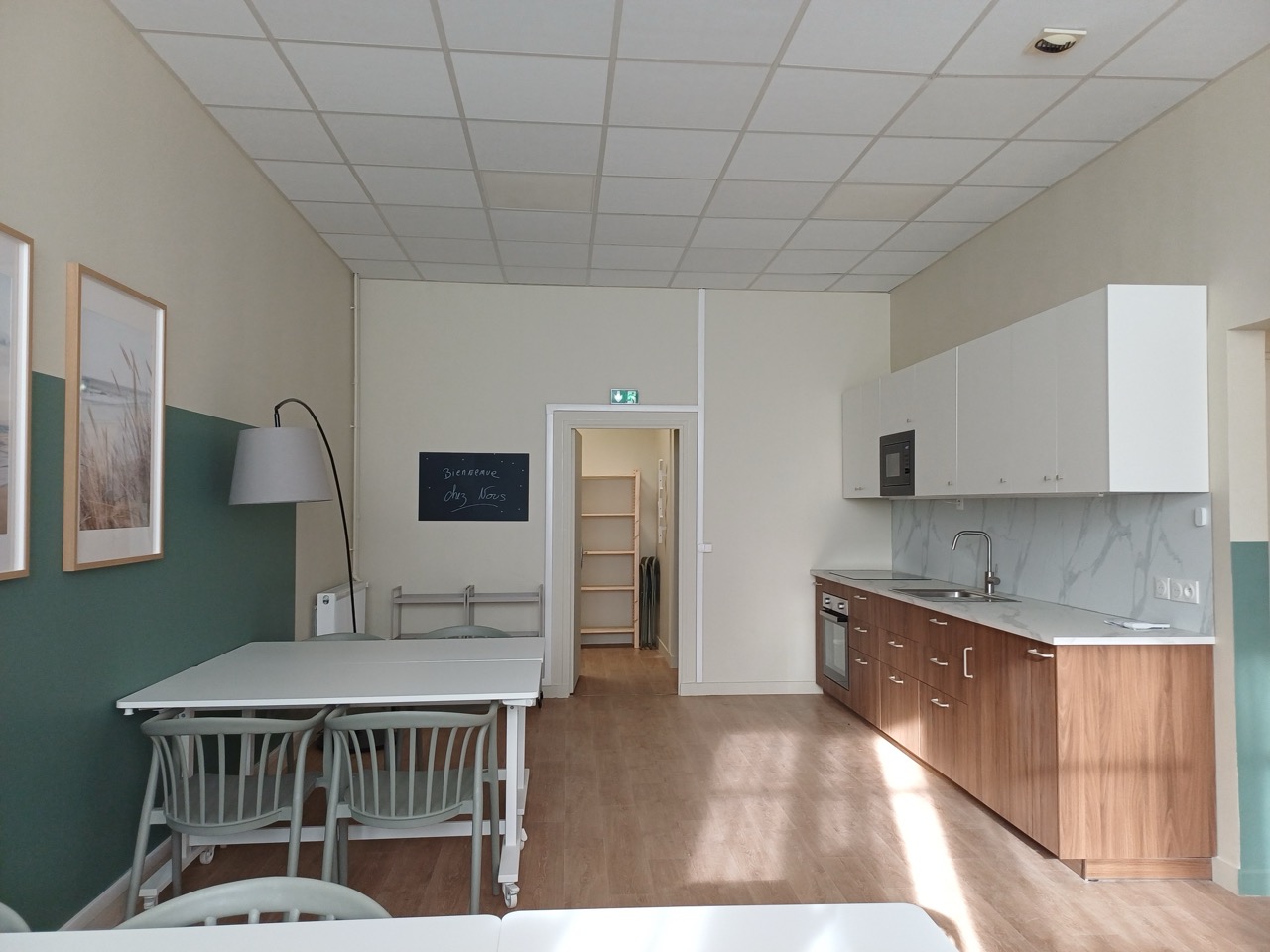 L’habitat inclusif de Bagnolet dispose d’un local commun résidentiel de 84 m2, adapté selon les préconisations d’ergothérapie, et aménagé et meublé selon les souhaits exprimés par les habitants avec l’intervention de Fabienne Faussereau, architecte d’intérieur missionnée par l’ALFI. Il comprend un bureau, un salon, une salle d’activités, une cuisine.