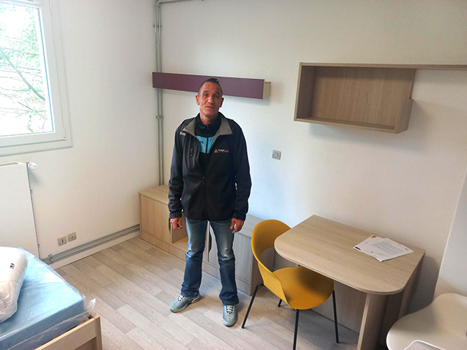 A Rennes, le premier résident a été très ému en découvrant son nouveau logement et le balcon avec vue sur le canal, et a exprimé sa gratitude aux équipes.