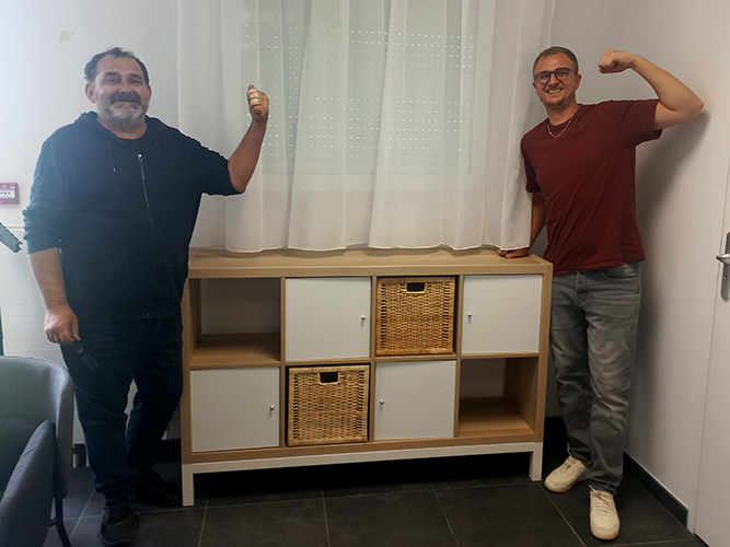 A Bretteville, la rencontre avec les premiers résidents a donné lieu à de belles discussions. Certains bricoleurs ont même aidé à monter un meuble de rangement dans la salle commune !