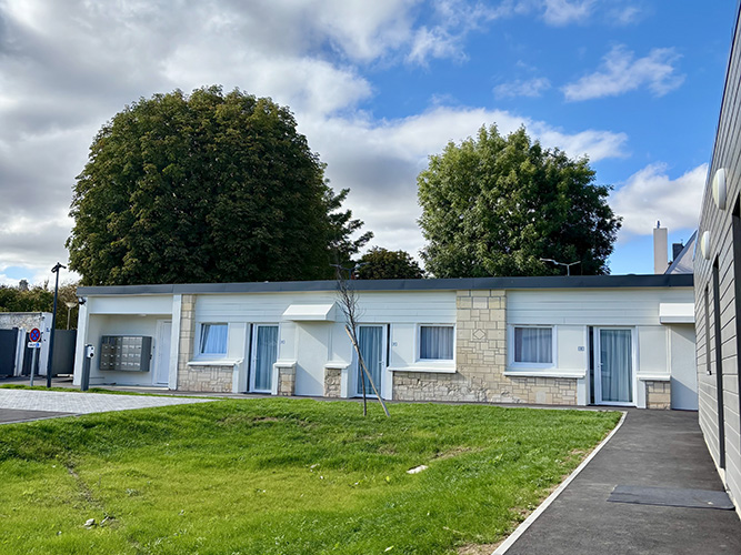 La pension de famille de Bretteville-sur-Odon, réhabilitation d’un appart hôtel des années 70 dont le confort thermique a été renforcé, offre une vue imprenable sur le bocage. Elle se situe dans un quartier pavillonnaire à proximité des services et commerces, au cœur d’une commune limitrophe de Caen et à une vingtaine de minutes de la mer.