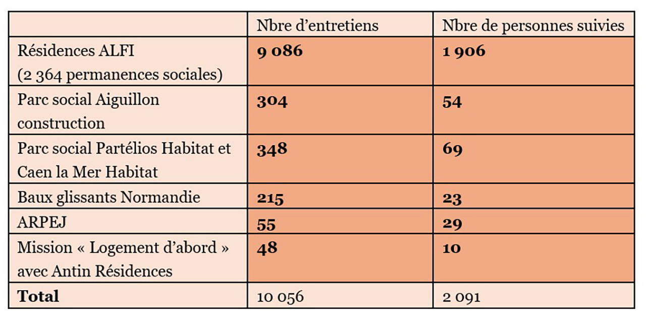Les travailleurs sociaux de l’ALFI accompagnent des ménages aux profils très variés, logés dans les résidences gérées par l’ALFI, au sein du patrimoine social de nos adhérents (ESH et Coopératives du Groupe Arcade-VYV) ou de partenaires (Caen la Mer Habitat, ARPEJ).