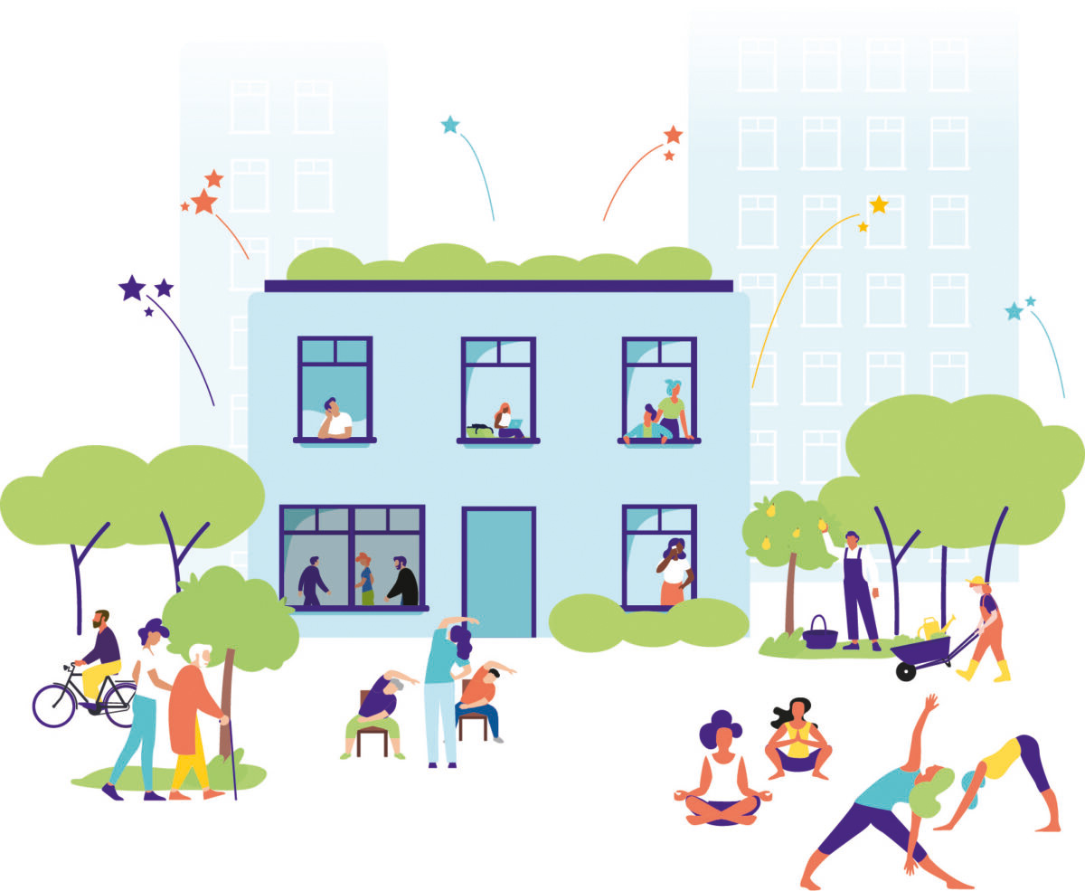 • soutenir les entités du Groupe et leurs partenaires dans le développement d’actions participatives favorables à la santé sociale des habitants, au sein des résidences labellisées « Mon Logement Santé » et « Mon Logement Santé – Rénovation ».